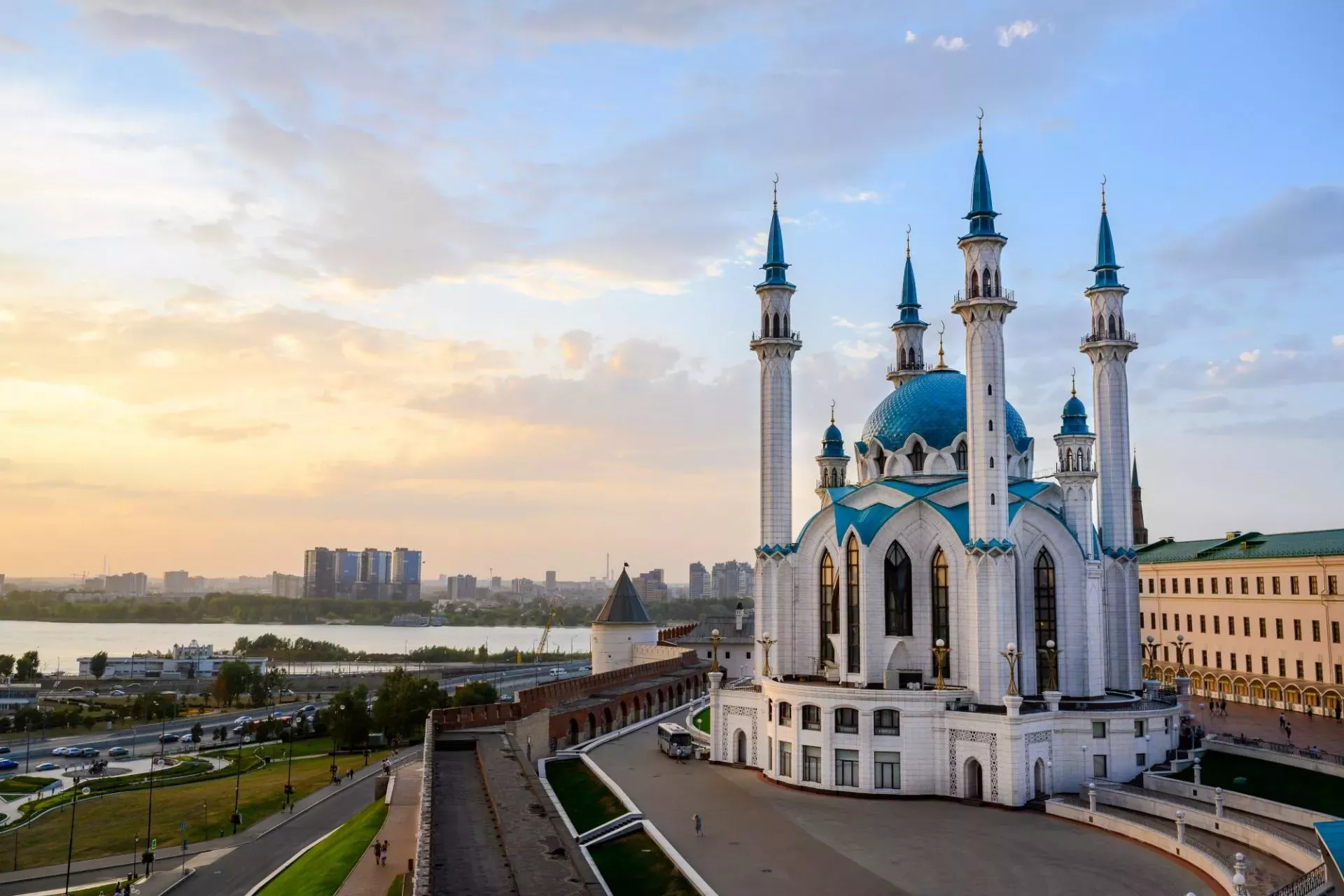Мечеть Кул-Шариф — главная мечеть Татарстана и одна из крупнейших в Европе. Ее построили в 2005 году на месте старинной мечети, разрушенной в годы СССР. Большой белокаменный купол, увенчанный золотым полумесяцем, и устремляющиеся ввысь минареты высотой 57 метров смотрятся величественно и торжественно.