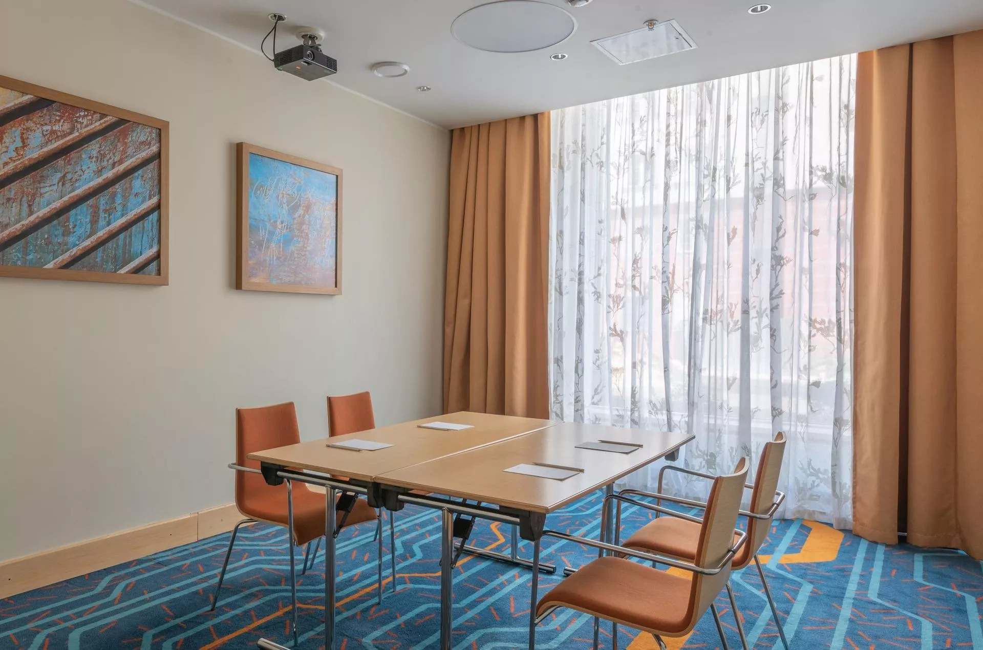 К Вашим услугам уютный зал Плутон, вместимостью до 10 человек. Современное конференц-пространство располагает всем необходимым оборудованием для проведения мероприятий: